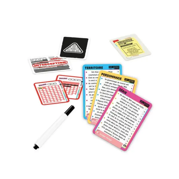 Piochez une carte au hasard, et tentez de la faire deviner à vos coéquipiers. Pour cela, vous devrez tout d’abord rayer un maximum de lignes directement sur la carte car chaque information laissée visible génère de la suspicion sur votre groupe et trop de suspicion vous fera perdre la partie.