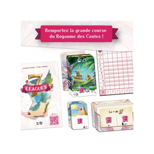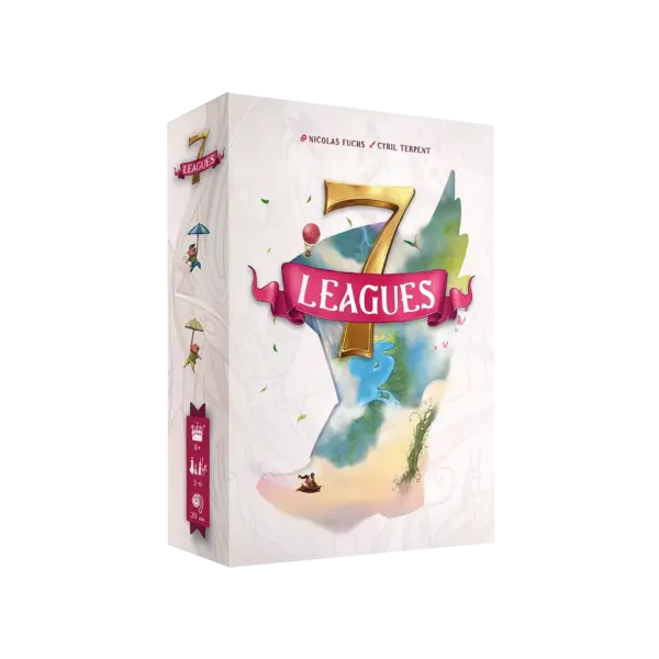 7 Leagues est un jeu de cartes stratégique et féerique pour 2 à 6 joueurs. Tour après tour, composez votre voyage en posant des cartes terrain devant vous et en repiochant selon la météo. Créez les meilleures synergies, activez des combos et formez des bottes pour marquer un maximum de points.