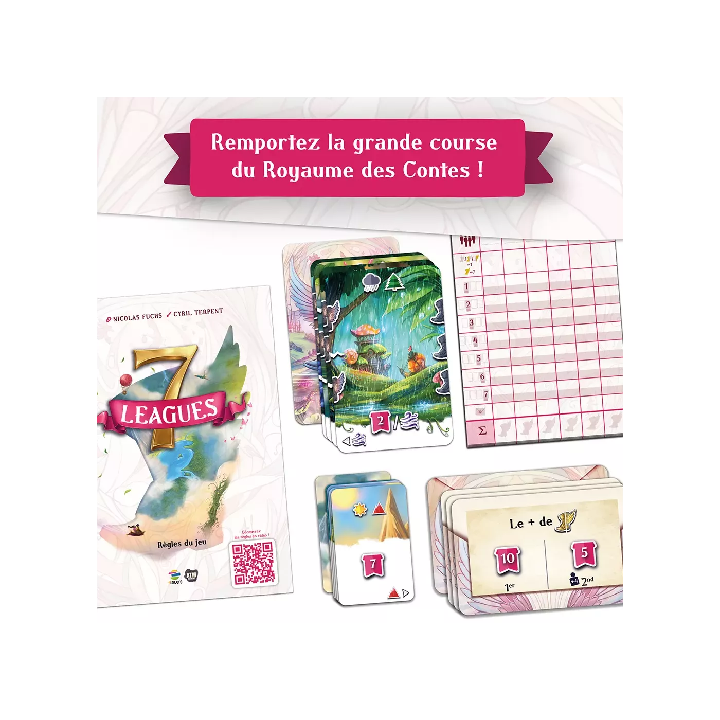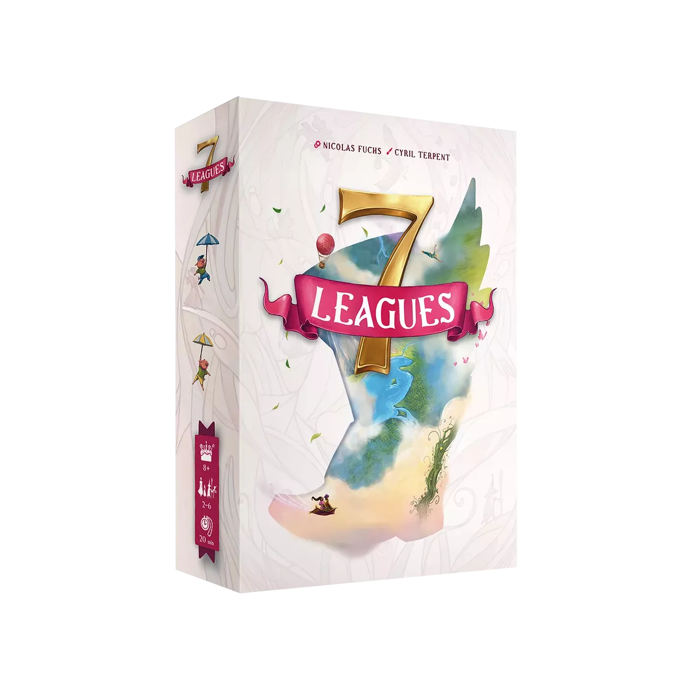 7 Leagues est un jeu de cartes stratégique et féerique pour 2 à 6 joueurs. Tour après tour, composez votre voyage en posant des cartes terrain devant vous et en repiochant selon la météo. Créez les meilleures synergies, activez des combos et formez des bottes pour marquer un maximum de points.