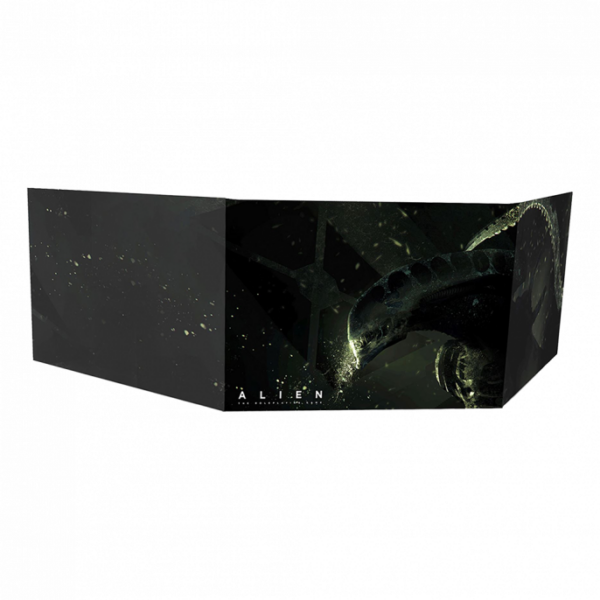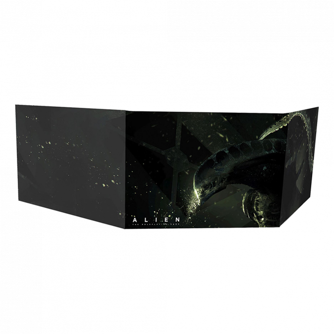 L’écran pour Alien se compose de 3 volets format paysage, avec une illustration immersive côté joueur, et les tables essentielles côté MJ. Il est accompagné d’une carte format A2 de l’espace connu !
