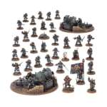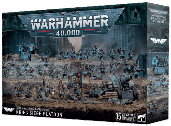 Cette boîte pleine à craquer est parfaite pour entamer une nouvelle collection du Death Korps de Krieg ou pour étoffer une armée existante que vous pourrez ensuite déchaîner dans les parties de Warhammer 40,000, en faisant des économies par rapport à un achat des kits au détail. Cette force écrasante est menée par une Escouade d’État-major comprenant un inquiétant Seigneur Commissaire. Le gros de cette formation est composé d’infanterie polyvalente du Death Korps de Krieg, en assez grand nombre pour contrôler le champ de bataille. Elle est soutenue par une unité de Sapeurs de Krieg et deux imposantes Équipes d’Artillerie pour faire pleuvoir la mort sur vos adversaires.