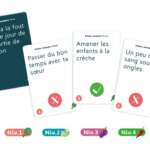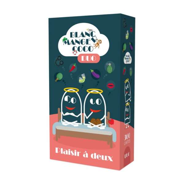 Plaisir à 2 apporte une expérience nouvelle à la gamme Blanc-manger Coco à double titre. Tout d’abord on joue en coopératif : le but est de battre la pioche. A chaque niveau franchi, on débloque des nouvelles cartes plus pimentées qui sont incorporées dans la pioche et on accroît le niveau de difficulté : la pioche joue de plus en plus de cartes par manche alors que les joueurs n’ont le droit qu’à une seule carte par manche. Ensuite et enfin, le jeu se joue à 2 ce qui n’était pas possible sur les autres jeux de la gamme. A tour de rôle, les joueurs vont se muer en Question Master et essayer de retrouver la carte de leur partenaire parmi les cartes jouées. Et comme sur le jeux originales, la stratégie gagnante n’est pas toujours la même : parfois jouer au plus absurde, parfois au plus trash… et parfois au plus évident.