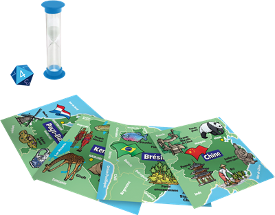 Un joueur observe une carte pendant que le sablier se vide (10 secondes). Puis il donne la carte à un autre joueur et jette le dé. Il doit ensuite répondre à la question indiquée par le dé: « Quelles sont les couleurs du drapeau? ». Si la réponse est bonne la carte est gagnée!