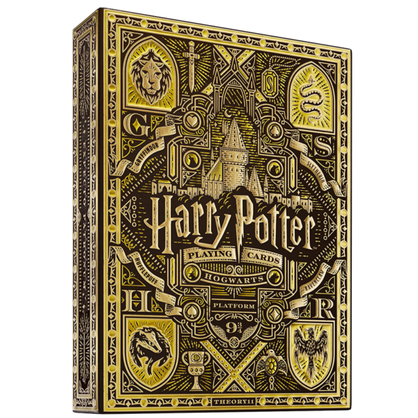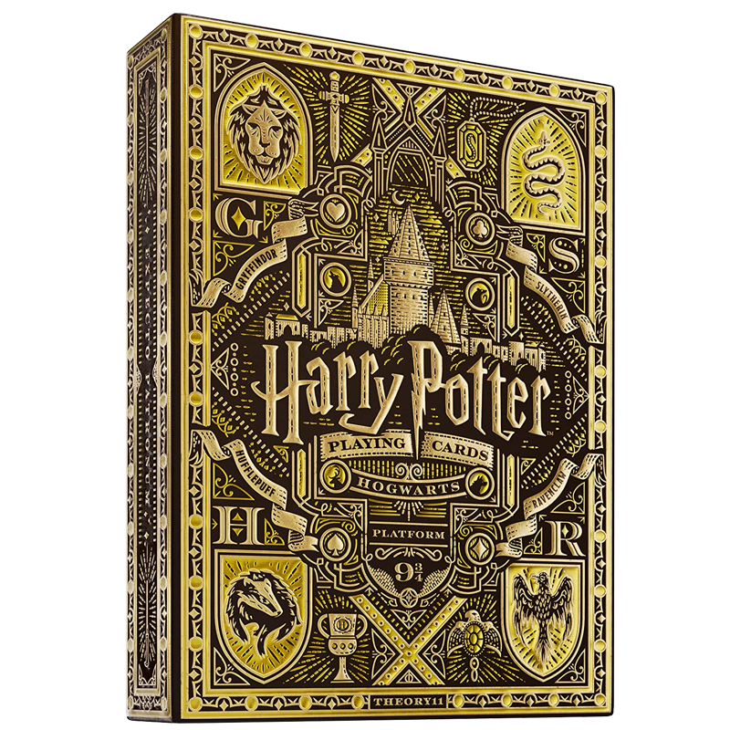 Theory 11 vous présente les cartes à jouer de qualité supérieure mettant en scène tous vos personnages préférés dans quatre éditions aux couleurs envoûtantes, représentant les quatre maisons de Poudlard : Gryffondor, Serpentard, Serdaigle et Poufsouffle agrémenté d’une finition à la brillance inégalée ! L’application d’un coating métal, avant le classique Air-Cushion® finish – signature et garantie de qualité de la marque – confère à ces cartes un look luxueux et une durabilité inédite ! L’étui bénéficie d’une magnifique finition dorée 3D texturée, sur fond graphique.