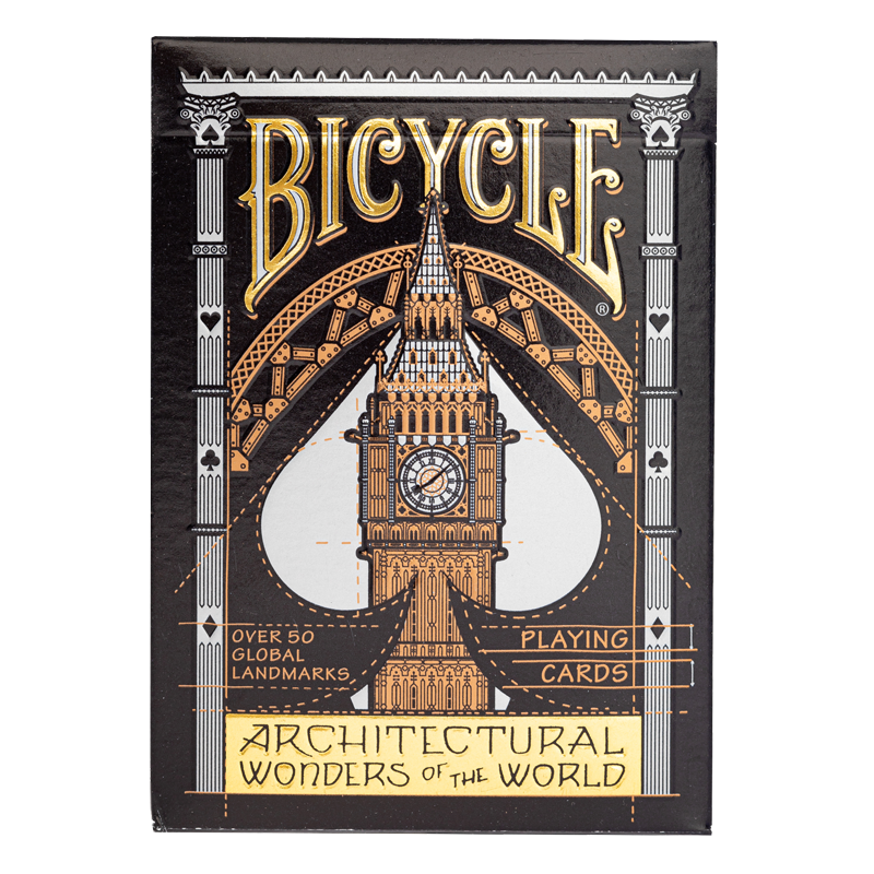 Retrouvez le design classique Bicycle à dos au architectural, agrémenté d’une finition à la brillance inégalée ! L’application d’un coating métal, avant le classique Air-Cushion® finish – signature et garantie de qualité de la marque – confère à ces cartes un look luxueux et une durabilité inédite !