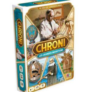 Chacun son tour, un joueur tente de situer une de ses cartes dans la frise chronologique. Le premier à ne plus avoir de carte dans sa main remporte la partie. Mais attention… si on se trompe, on pioche ! De la connaissance, de la déduction mais aussi un peu de chance permettent de gagner. Testez-vous, trompez-vous mais amusez-vous ! « Tout ce que j’ai appris, je l’ai appris en échouant. » – Maître Yoda Chroni est un jeu instructif et évolutif avec toute une collection de thèmes à mélanger. Alors, Pac-Man, avant ou après Star Wars ?