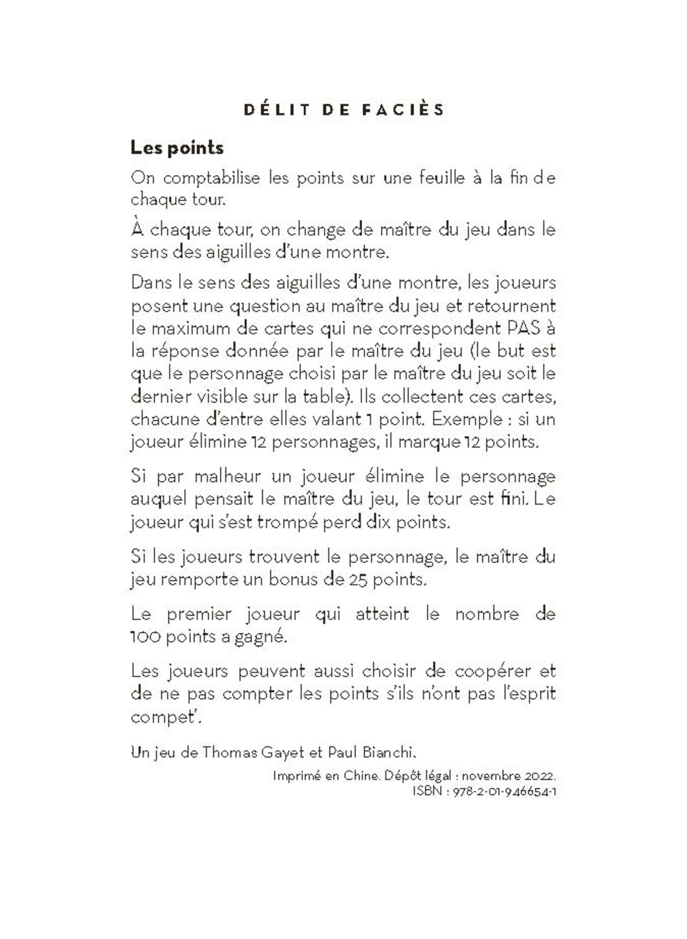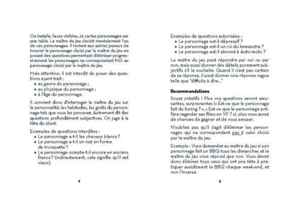 Posez une question chacun à votre tour pour découvrir le personnage mystère de votre adversaire. Chaque personnage éliminé vous rapportera 1 point !