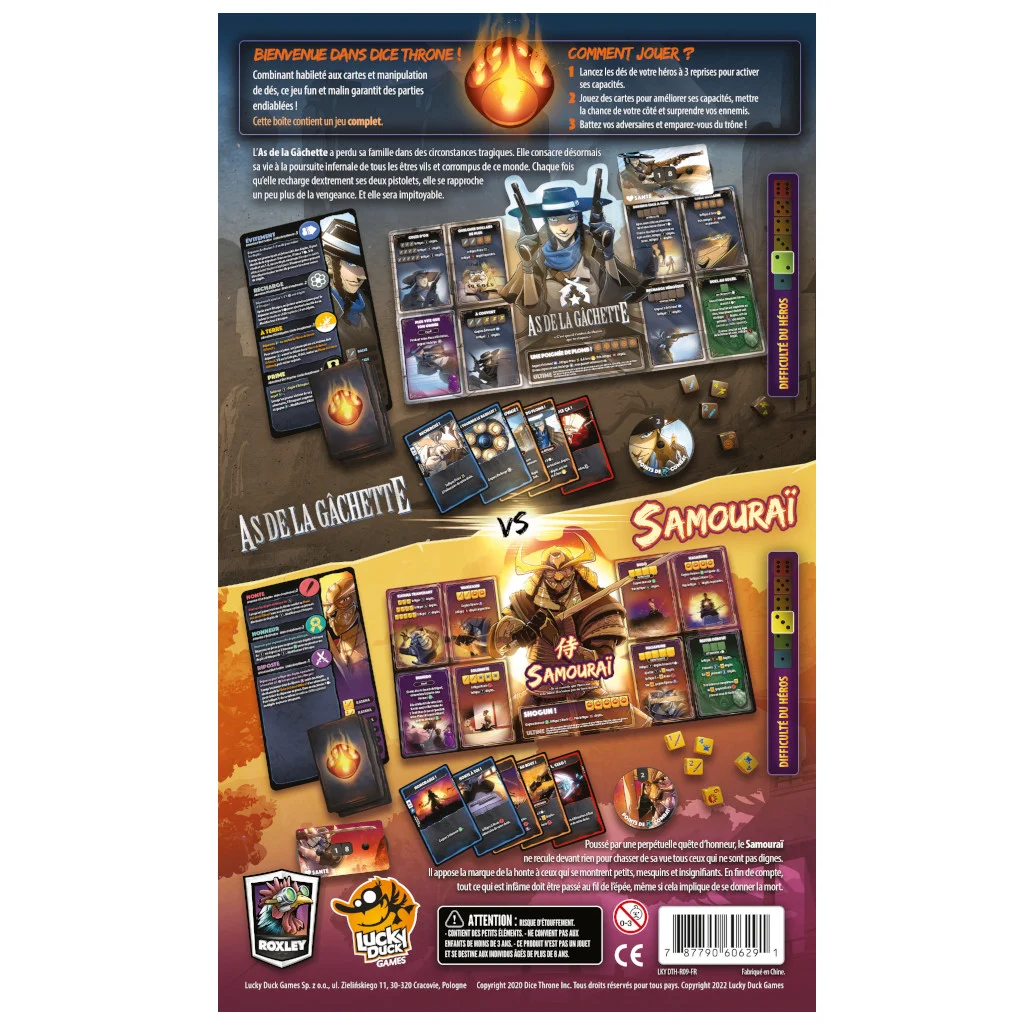 Dice Throne est un jeu compétitif ou en équipe, proposant des combats à base de dés et de pouvoirs spécifiques à chaque personnage. Dans cette première boite vous incarnerez le Barbare ou l’Elfe Lunaire dans un combat épique !