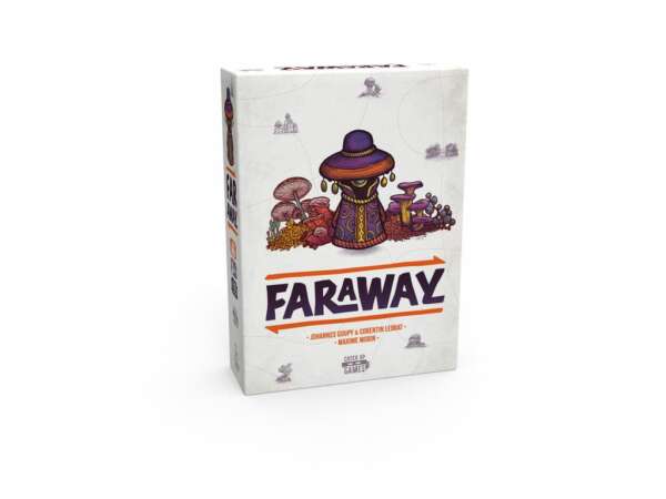 Dans une partie de Faraway, vous jouez 8 cartes devant vous, en une ligne de gauche à droite. Ces cartes représentent les régions que vous visitez lors de votre exploration. Chaque carte vous demande de remplir des conditions pour gagner des points de victoire. En fin de partie, vous réalisez le chemin de retour en comptant vos points dans le sens inverse de pose. Et c’est là tout le sel du jeu. Tout au long de la partie, vos cartes serviront à la fois à vous fixer de nouveaux objectifs et à remplir ceux que vous avez déjà joués. À chaque tour, vous faites votre choix dans votre main de 3. Puis vous complétez votre main grâce à la rivière de cartes. Faraway se jouant en simultané, un astucieux système de priorité accentue encore l’importance de vos décisions. Car choisir en dernier vous laisse moins d’option, réduisant vos possibilités lors des tours suivants.