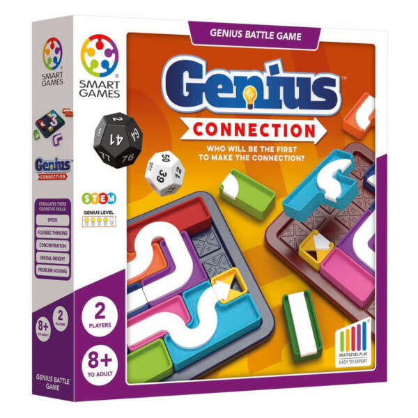 Le moyen le plus rapide de s’amuser avec des puzzles ! Genius Connection est un jeu de réflexion qui vous met au défi de surpasser votre adversaire en réfléchissant rapidement. Lancez les dés et relevez des défis aléatoires, ou explorez les 576 puzzles de cartes, du plus facile au plus difficile. Êtes-vous sur la bonne voie ? Que vous jouiez seul ou avec un ami, Genius Connection est un ajout essentiel à votre collection SmartGames.