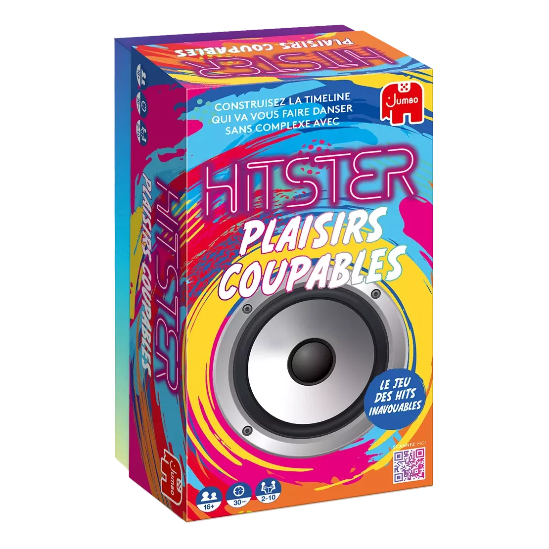 Dans Hitster – Plaisirs Coupables, les joueurs créent leur propre frise chronologique musicale sans la moindre gêne. Après tout, tout le monde a ses petits plaisirs coupables, non ? Le premier à réunir 10 hits devient le grand HITSTER !
