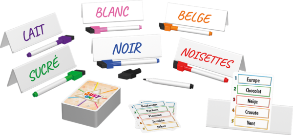 Un joueur doit deviner un mot sur une carte. Pour ce faire, les autres joueurs vont écrire un indice sur leur chevalet. Celui qui devine garde les yeux fermés pendant que les autres comparent leurs mots. Si deux mots sont identiques, on les efface !