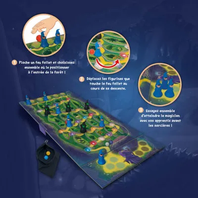 Puis on pioche une autre bille et on recommence. Si les apprentis arrivent près de l’enchanteur avant les sorcières, c’est gagné!