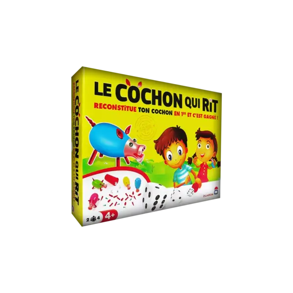 La construction du cochon qui rit se fait pièce par pièce (membre par membre !). Les dés affichant 6 donnent le droit au joueur de commencer à assembler son cochon, les as lui permettent de placer les » attributs » : pattes, oreilles, yeux…