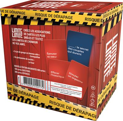 Le principe est simple : un joueur lit une carte question comportant un mot manquant. Les autres joueurs choisissent l’une de leurs cartes réponse pour compléter la phrase. La combinaison la plus scandaleuse gagne ! Un délire convivial et hilarant avec 400 cartes.