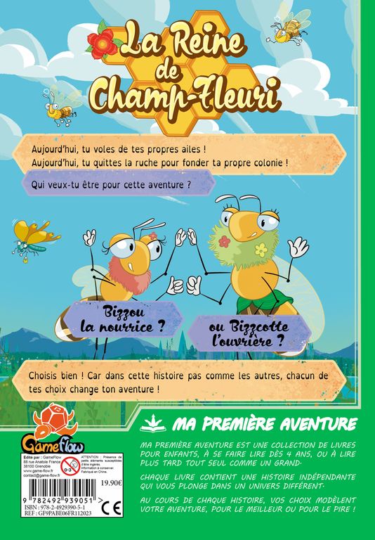 Crée ta propre histoire : à chaque page coupée en trois tu devras faire un choix. Ouvre le livre et choisis l’abeille que tu souhaites incarner : Bizzcotte, l’ouvrière puissante et téméraire ? Ou Bizzou, la nourrice fine et pleine de malice ? Maintenant, ton aventure peut commencer.