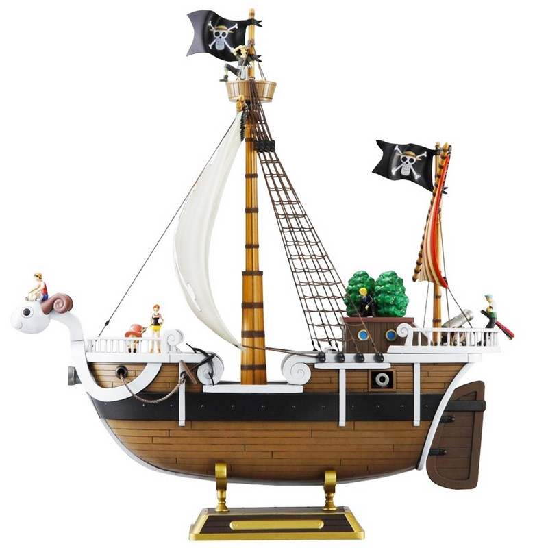 Une fois assemblé, le Going Merry mesure 30 cm et il est livré avec son équipage au grand complet : Nico Robin, Brook, Zoro, Francky, Nami, Sanji, Chopper, Sogeking sans oublier l’incontournable Monkey D. Luffy.