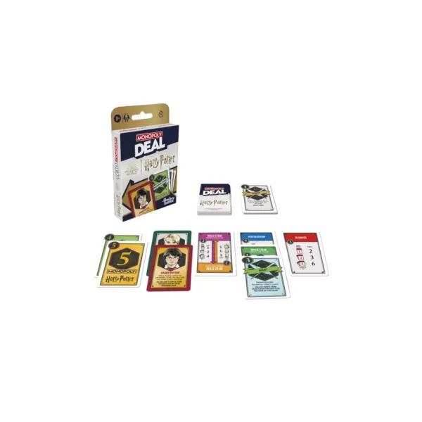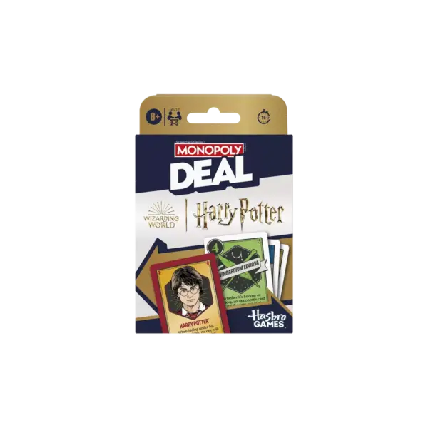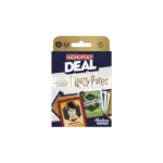 Monopoly Deal est un jeu de cartes rapide et très simple qui reprend le concept du célèbre jeu de société Monopoly, mais cette fois-ci avec vos personnages préférés du monde d’Harry Potter ! Jetez des sorts à vos adversaires et assemblez 3 sets d’objets magiques pour gagner ! Des parties toujours aussi rapides (15 minutes), remplies d’action et de magie !