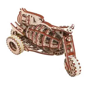 Ce jeu de construction peut être assemblé sans colle, la boîte contient tout ce qu’il vous faut dont un outil universel qui peut être utilisé pour dégager les pièces des planches sans les abimer, de monter les engrenages sur les axe et effectuer des mesures.