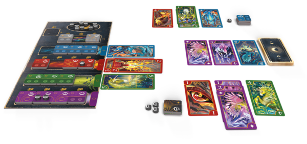 Les Mythicals, ces créatures élémentaires qui se nourrissent de la magie de l’air, de l’eau, de la terre et du feu, ne se révèlent qu’au clair de lune. Vous avez jusqu’à l’aube pour les observer (collecter des cartes) afin de dompter la magie des éléments (gagner des tuiles Maîtrise) et remporter la partie (obtenir le plus de points de victoire).