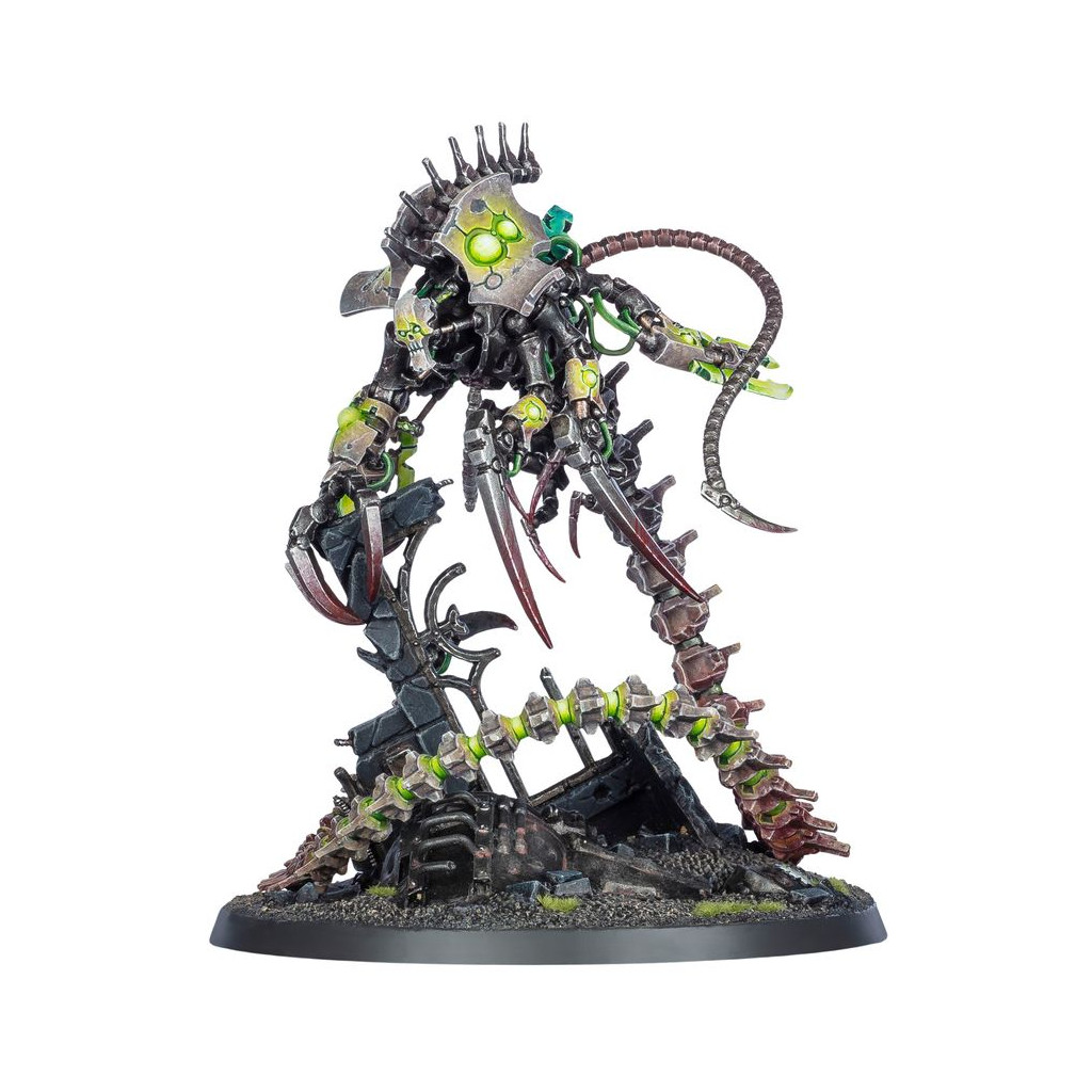 Si l’être connu comme le Nékrosor Ammentar posséda jamais un véritable nom ou une identité, ils ont depuis longtemps été oubliés. Certains pensent qu’il fut le premier à succomber à la démence qui afflige les Destroyers, et partout où il va, une folie meurtrière s’ensuit. Chaque élément de la silhouette du Nékrosor Ammentar a été modelé en ayant à l’esprit la destruction de victimes organiques. Les multiples lames qui garnissent ses membres possèdent un fil tranchant de déstabilisation monomoléculaire, une queue serpentine lui confère une mobilité exceptionnelle, et des destructeurs d’hostiles sont montés sur ses appendices supplémentaires.