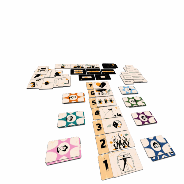 En début de manche, plusieurs cartes Mission et 7 cartes Idée (images ou mots) sont posées sur la table. Ensemble, vous allez décider quelle mission accomplir et quelles cartes Idée lui associer. Vous pouvez parler librement des missions, mais en aucun cas vous ne pouvez dire quoi que ce soit qui permette aux autres joueurs d’identifier une ou plusieurs cartes Idée : il faut évoquer les liens, les associations, sans jamais identifier une carte avec certitude. C’est là que tout se joue : comprendre les autres, être compris, et espérer que la majorité pense à la même combinaison que vous !