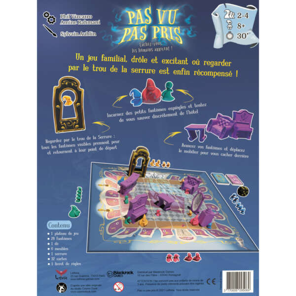 À la fin de chaque tour, un joueur est tiré au sort pour choisir le côté où placer la serrure. Une fois positionnée, les joueurs regardent au travers pour repérer un maximum de fantômes : tous ceux qui sont vus prennent peur et retournent à leur côté de départ ! Plus les fantômes sont grands, plus ils sont durs à cacher, mais plus ils rapportent des points en fin de partie s’ils sont parvenus à sortir.