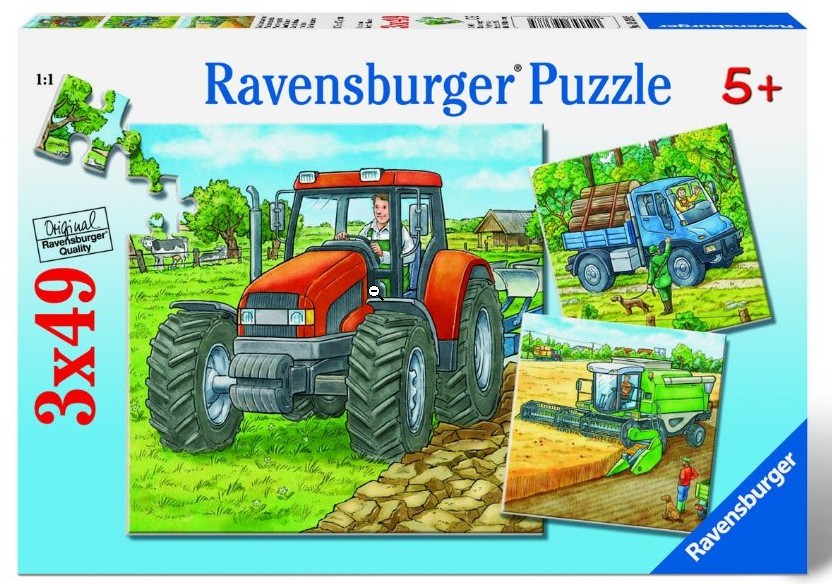 Boîte 3 Puzzles de 49 Pièces sur les véhicules agricoles.