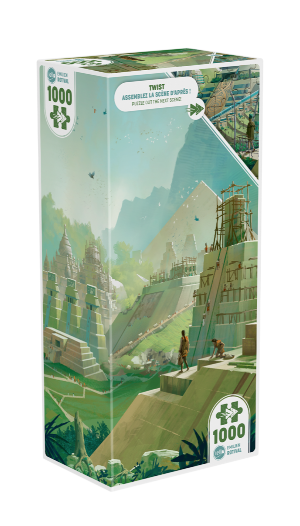 Avec une palette de verts et la multitude de ruines enfouies dans les jungles d’Amérique latine, le thème végétal s’imposait. L’illustration d’origine met en scène une réunion imaginaire de pyramides parmi les plus connues de notre monde, progressivement englouties par la jungle. Elle a été détournée en cité utopique du futur pour lui conserver cet aspect végétal d’un endroit qui serait plaisant à habiter. Le défi principal a été de garder aux bâtiments leurs silhouettes reconnaissables mais les décaler dans le temps de manière crédible, tout en évitant l’écueil des pyramides industrielles dystopiques.