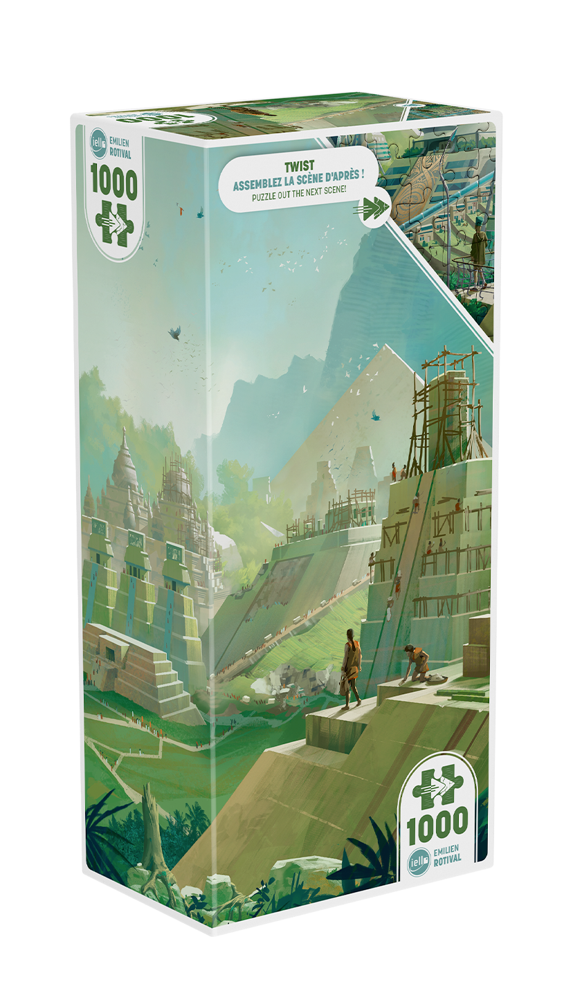 Avec une palette de verts et la multitude de ruines enfouies dans les jungles d’Amérique latine, le thème végétal s’imposait. L’illustration d’origine met en scène une réunion imaginaire de pyramides parmi les plus connues de notre monde, progressivement englouties par la jungle. Elle a été détournée en cité utopique du futur pour lui conserver cet aspect végétal d’un endroit qui serait plaisant à habiter. Le défi principal a été de garder aux bâtiments leurs silhouettes reconnaissables mais les décaler dans le temps de manière crédible, tout en évitant l’écueil des pyramides industrielles dystopiques.