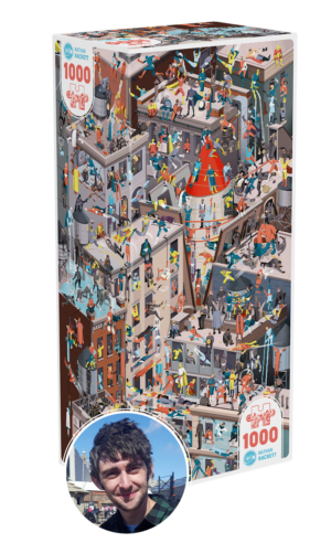 Les façades des bâtiments et la couleur des superslips des super-héros sauront vous guider à travers ce puzzle fourmillant de scénettes pleines d’humour.