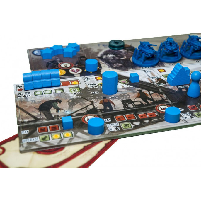 Dans Scythe, le décor a son importance. Il fait même partie intégrante du jeu. L’histoire se déroule dans une ambiance victorienne, ponctuée d’élément punk. Le côté industriel du jeu, avec la présence de mines, d’usines, d’ouvriers et de Mechas apporte énormément à l’atmosphère de Scythe et rend le jeu unique. Les illustrations de Jakub Rozalski jouent un rôle important. Elles aident les joueurs à se plonger dans l’univers original de Scythe.