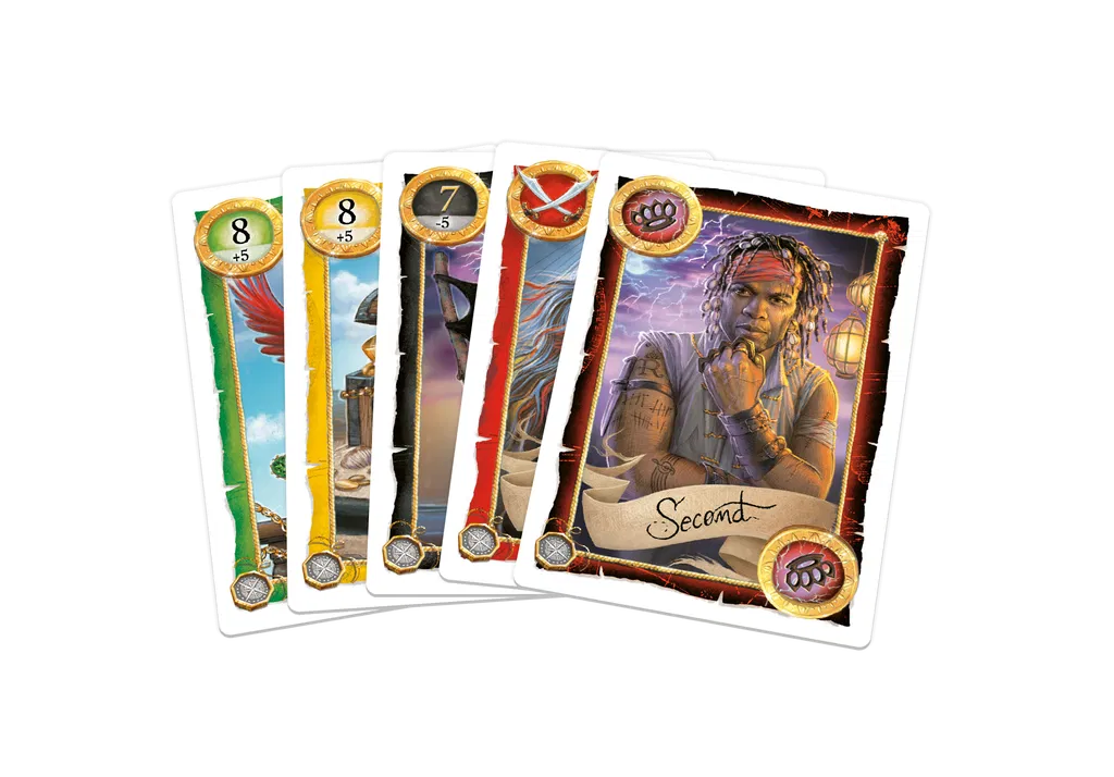 Skull King extension vous propose de nouvelles cartes additionnelles dans la continuité du jeu pour une intégration simple. Vous y trouverez 12 cartes de couleurs qui suivent les règles du jeu initial et 7 cartes spéciales avec de nouvelles capacités. Découvrez Mary Throne, la nouvelle pirate de l’équipage, et forcez l’un de vos adversaires à jouer une carte de votre choix. Le supplice de la planche, la dernière salve, la raie tachetée et encore d’autres cartes spéciales vous donnerons de nouveaux moyens de renverser la partie pour tenir vos paris ou pour couler vos adversaires. L’extension vous permet également d’ajouter un joueur supplémentaire et de faire des parties jusqu’à 9 joueurs.