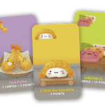 Pendant que les cartes Sushi passent de mains en mains entre les joueurs, choisissez les cartes que vous placerez devant vous. Collectionnerez-vous les raviolis ou tenterez-vous d’avoir le plus grand nombre de desserts ? À moins que vous ne préfériez viser les paires de tempuras ?
