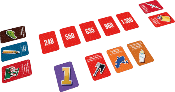 Commencez par prendre connaissance d’une carte, puis vous essayez de deviner sa valeur. Par exemple : « Combien y a t-il de gouttes d’eau dans une tasse de café ? ». Ensuite, vous placez la carte sur la ligne, dans l’ordre croissant par rapport aux autres… Vous avez deviné correctement ? Laissez la carte en place et prenez la suivante !