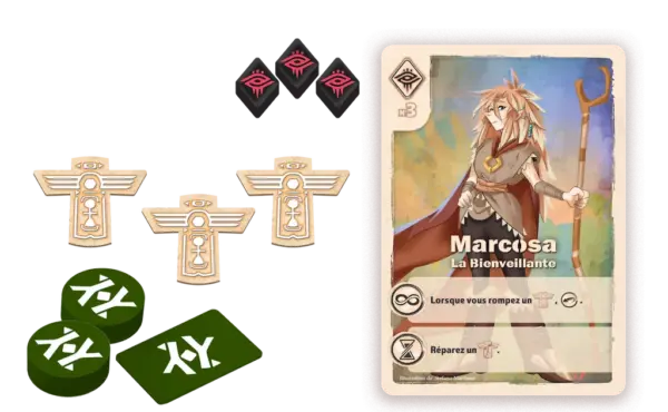 The Vale of Eternity – Curse enrichit l’expérience avec l’arrivée des Invocateurs, des personnages dotés de pouvoirs uniques qui évoluent au fil de la partie. Chaque joueur en incarne un, ajoutant une forte asymétrie et une rejouabilité renouvelée. Cette extension introduit aussi deux nouvelles dynamiques : les malédictions, qui pèsent sur vos cartes et votre score final mais peuvent être apaisées pour gagner des points, et les sceaux, une ressource précieuse à briser pour invoquer ou à réparer pour se protéger. Entre puissance corruptrice et purification, il faudra gérer vos choix pour triompher de l’influence de l’Arbre maudit.