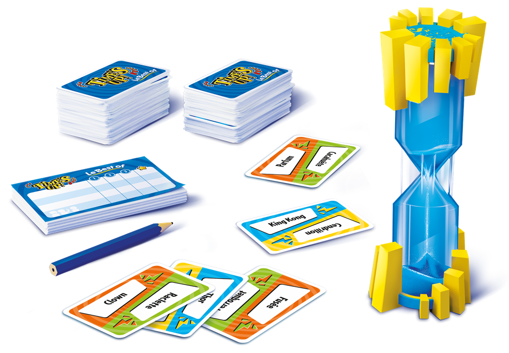 Dans Time’s up, faites deviner à votre équipe le plus possible de mots, de personnalités ou d’œuvres, en un temps limité. Pour la première manche, décrivez librement chaque mot à trouver. Sur la manche suivante, reprenez toutes les cartes devinées, mélangez-les et recommencez, mais cette fois n’utilisez qu’un seul mot. Enfin, dans la troisième manche, toujours avec les cartes trouvées à la première, utilisez le mime pour faire gagner votre équipe !