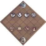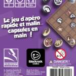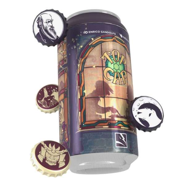 Dans Top Cap, chaque joueur commence avec quatre capsules de sa couleur sur une grille 6×6 ; le coin de la grille le plus proche de lui représente une bouteille de la couleur correspondante. À chaque tour, choisissez l’une de vos capsules, comptez le nombre de capsules de l’une ou l’autre couleur qui se trouvent sur des cases adjacentes (orthogonales ou diagonales), puis déplacez cette capsule d’exactement autant de cases en ligne droite, soit en diagonale, soit en orthogonale.