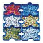 Grâce à ces six bacs pratiques, triez les pièces de puzzle selon les couleurs ou les formes. Un système de rangement facile permet de les accrocher ensemble ou de les empiler. Vous pourrez ainsi, si vous le souhaitez, libérer l’espace pour une autre activité. Pour un transport des pièces plus sécurisé, les bacs se rangent facilement dans la boîte.