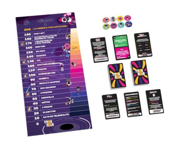 De nombreuses autres cartes questions dynamisent le jeu, dont les cartes « Cauchemars » (5 questions à la suite sur des thèmes variés) ou encore les cartes « + ou -« , « cite m’en 5 » ou « Info ou Intox ». Des cases spécifiques du plateau comportent des actions, permettant de piéger vos adversaires, ce qui rend le jeu encore plus amusant… et stratégique !