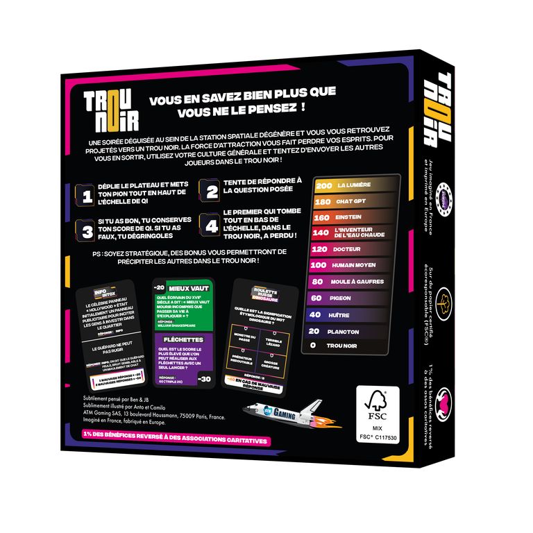 De nombreuses autres cartes questions dynamisent le jeu, dont les cartes « Cauchemars » (5 questions à la suite sur des thèmes variés) ou encore les cartes « + ou -« , « cite m’en 5 » ou « Info ou Intox ». Des cases spécifiques du plateau comportent des actions, permettant de piéger vos adversaires, ce qui rend le jeu encore plus amusant… et stratégique !