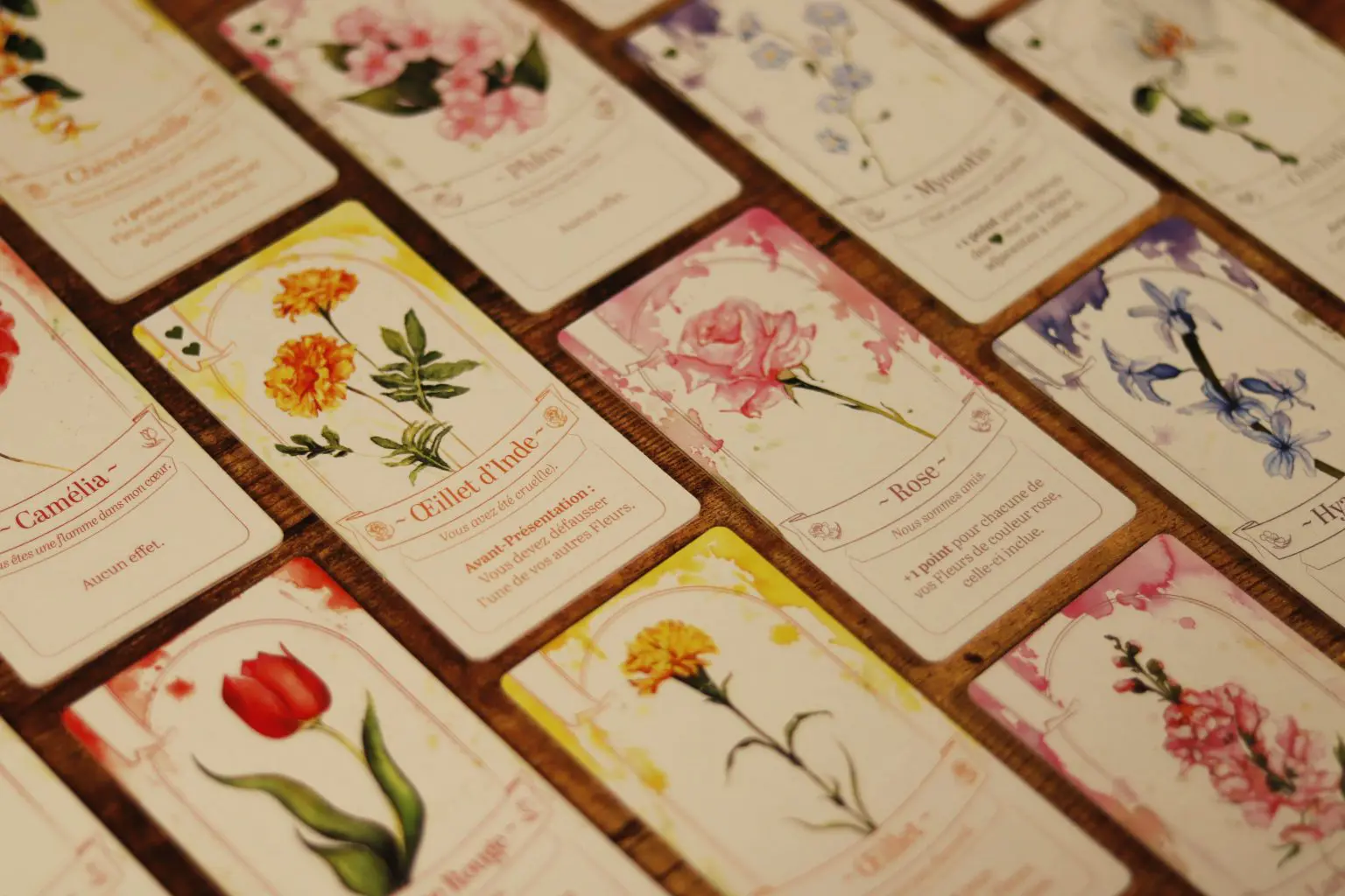 Offrez des fleurs, appliquez leurs effets, composez des bouquets et marquez davantage de points que vos adversaires dans ce jeu de cartes subtil à la mécanique délicieusement retorse, qui propose également un mode solitaire particulièrement ingénieux.