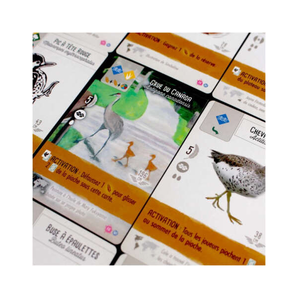 Plus de 300 fans de Wingspan ont soumis des illustrations de leurs oiseaux préférés du jeu pour le Wingspan Fan Art Challenge, et nous en avons sélectionné 255. Le résultat final est un paquet de cartes oiseaux – mécaniquement identiques à leurs homologues du jeu Wingspan et des extensions Europe, Océanie et Asie – mais qui ajoutent une saveur particulière aux plateaux de jeu.